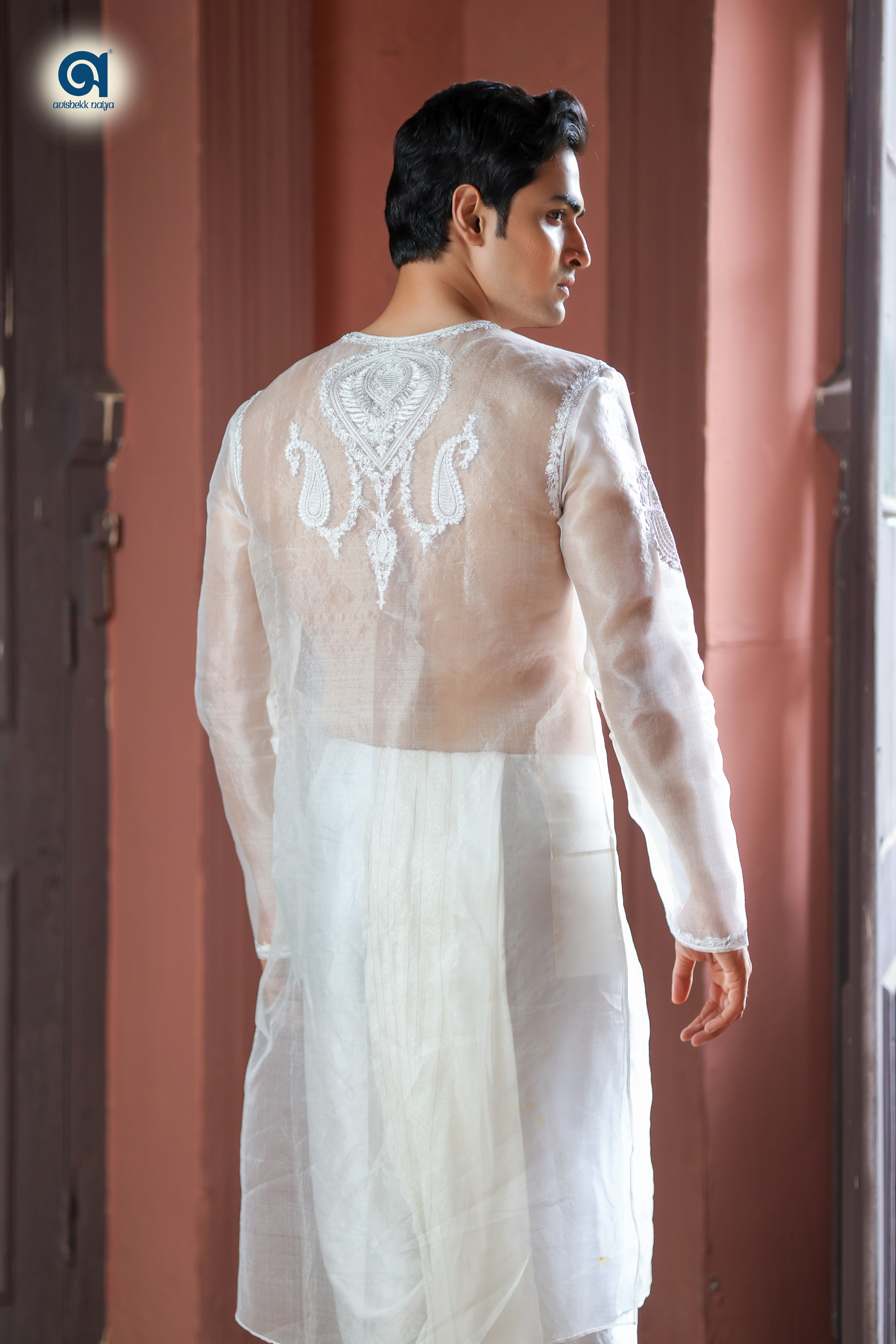 Handwoven Pure Organza Silk kurta With Hand Embroiderey Work.